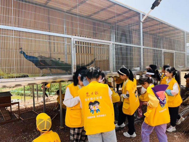 转至萌宠乐园,孔雀开屏羽翼斑驳,鸽群在掌心跳起华尔兹。孩子们记录孔雀尾羽的自然密码,观察鸽子翅膀弧度,讨论鸡窝的建筑结构。采访本上多出歪扭笔记:“鸡的脚印像竹叶,啄米声像小鼓点。”人与自然的和谐乐章,在欢笑声中流淌。