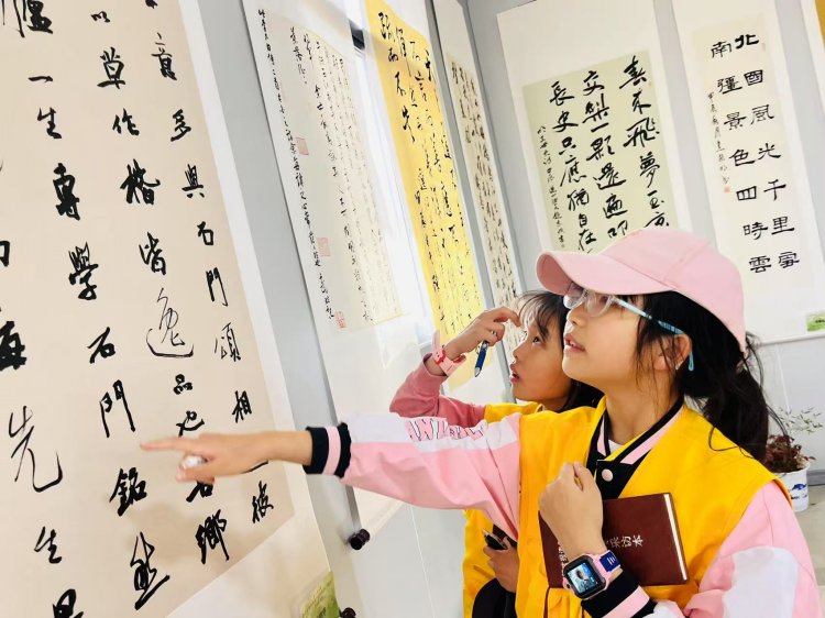 移步名师书画篆刻馆,墨香与历史交织。书法长卷游龙走笔,水墨山水云雾缭绕。老师指尖轻点画卷:“看,这浓墨焦墨的碰撞,恰似山峦的阴阳向背。”小记者们尝试用稚嫩线条临摹书法骨力,在素描本上捕捉山水灵秀。干花标本与小篆“春”字并置,传统艺术在童真视角下焕发生机。