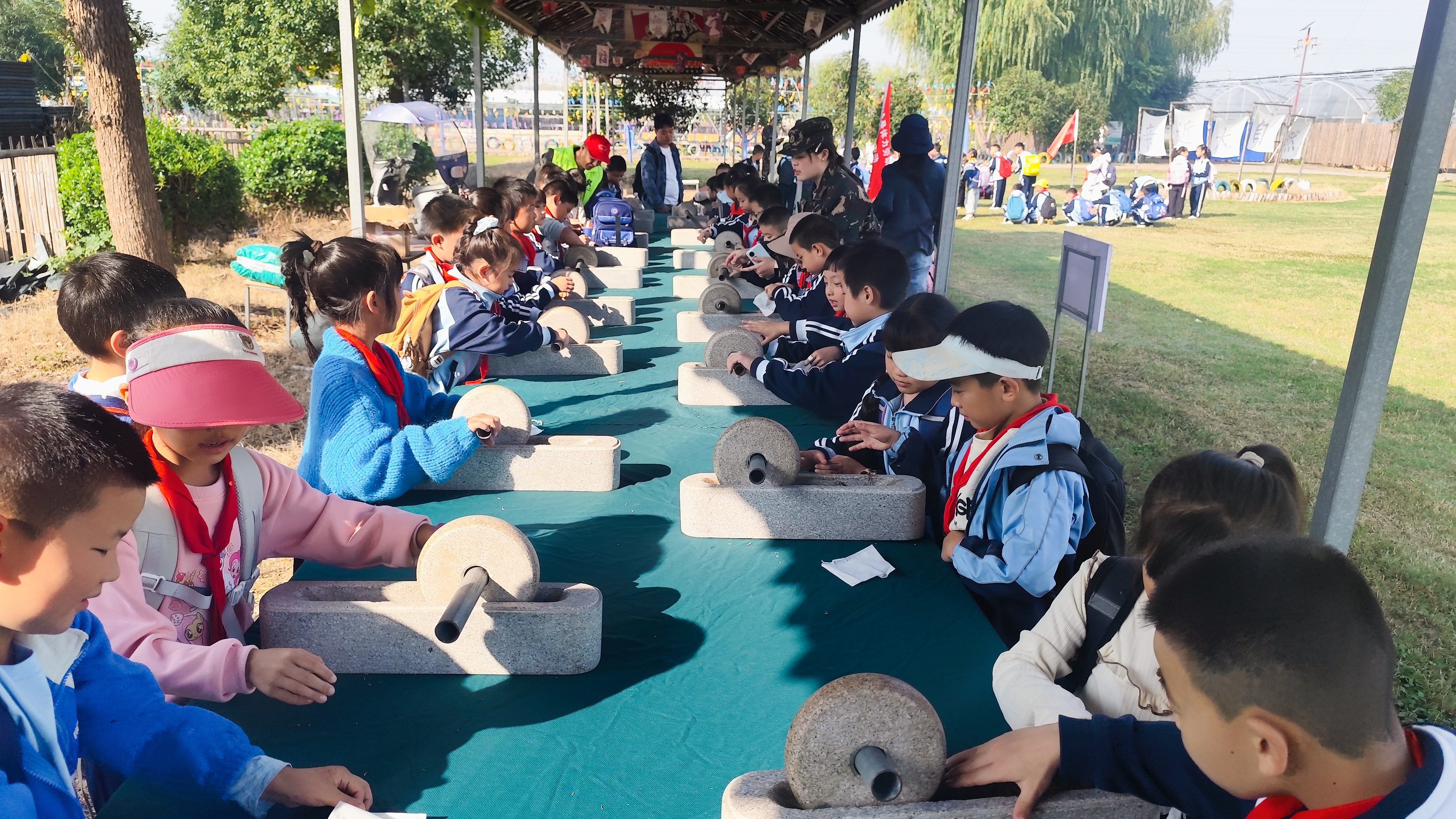 一下车,清新的田园气息扑面而来。基地内,错落有致的农耕设施、色彩斑斓的自然景观与充满传统韵味的体验区,让孩子们瞬间眼前一亮。在研学老师的带领下,孩子们整齐列队,认真聆听活动注意事项与流程安排。“今天我们不仅要玩得开心,更要学得用心,在体验中感受传统文化的魅力,了解农耕生活的不易。”研学导师的话语,为孩子们的研学之旅定下了充实的基调。