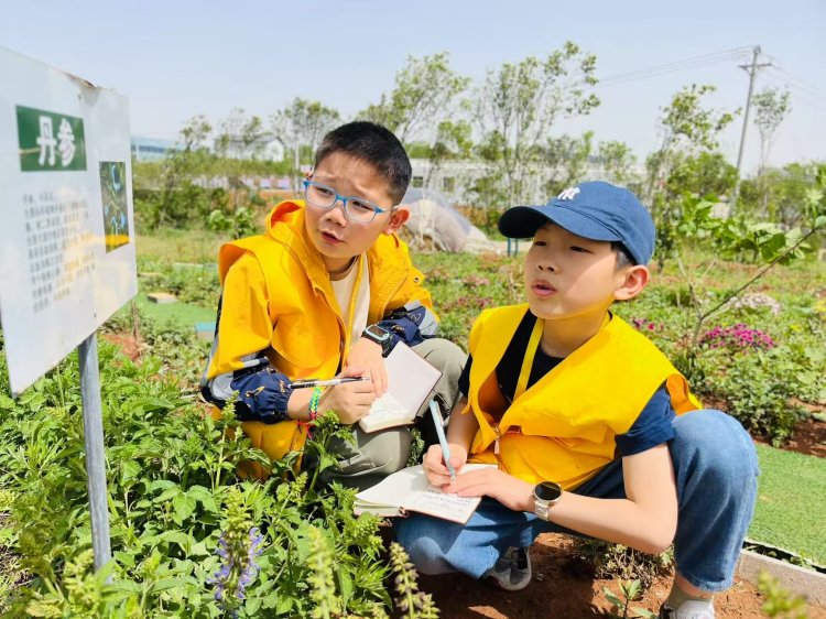踏入京山本草纲目园,时光仿若凝结。芍药初绽的粉瓣凝露,金银花藤随风轻晃,满天星似散落碎钻。小记者们俯身细嗅,镜头对准嫩绿的止咳草叶片,笔记本上迅速诞生草药速写。指导老师轻点药丛:“连翘清热,麦冬润肺……”孩子们或踮脚细嗅,或轻触藤蔓,传统本草学在这群幼苗心中悄然生根。