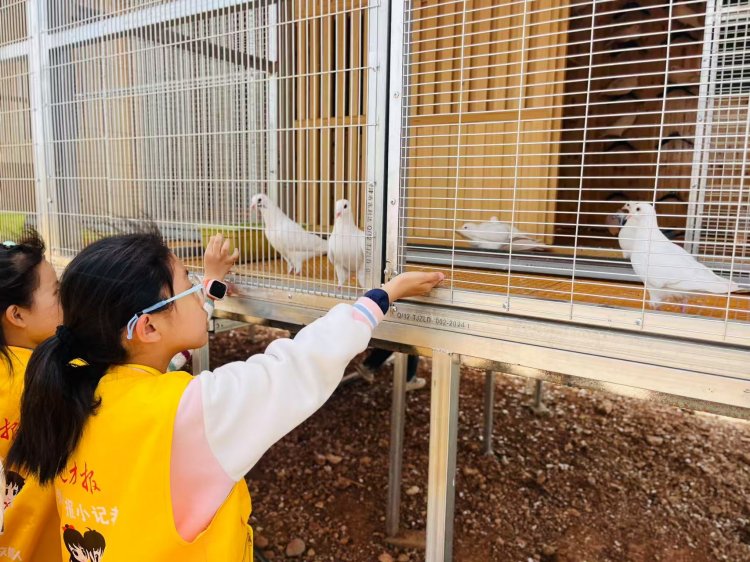 转至萌宠乐园,孔雀开屏羽翼斑驳,鸽群在掌心跳起华尔兹。孩子们记录孔雀尾羽的自然密码,观察鸽子翅膀弧度,讨论鸡窝的建筑结构。采访本上多出歪扭笔记:“鸡的脚印像竹叶,啄米声像小鼓点。”人与自然的和谐乐章,在欢笑声中流淌。