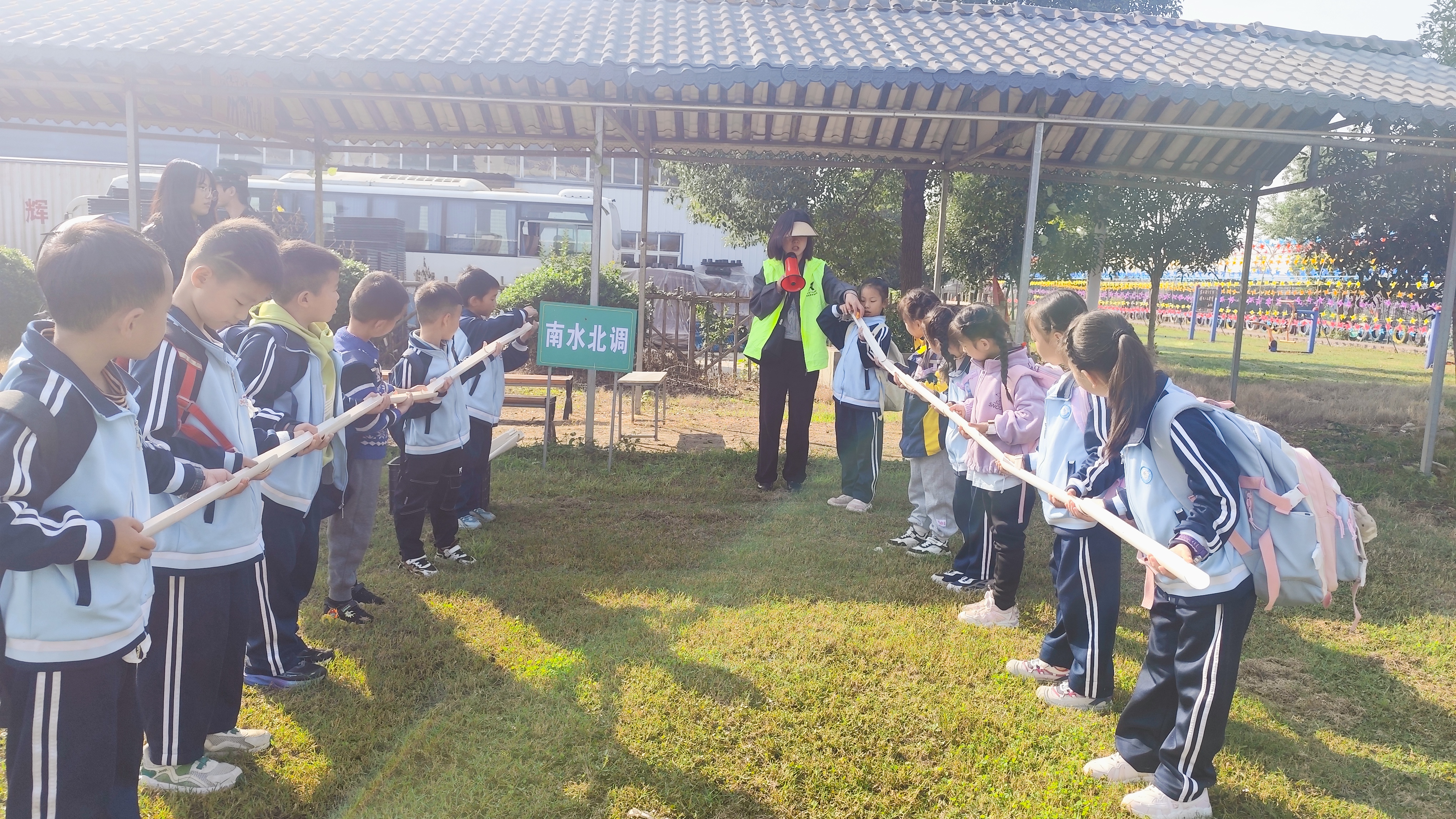 一下车,清新的田园气息扑面而来。基地内,错落有致的农耕设施、色彩斑斓的自然景观与充满传统韵味的体验区,让孩子们瞬间眼前一亮。在研学老师的带领下,孩子们整齐列队,认真聆听活动注意事项与流程安排。“今天我们不仅要玩得开心,更要学得用心,在体验中感受传统文化的魅力,了解农耕生活的不易。”研学导师的话语,为孩子们的研学之旅定下了充实的基调。