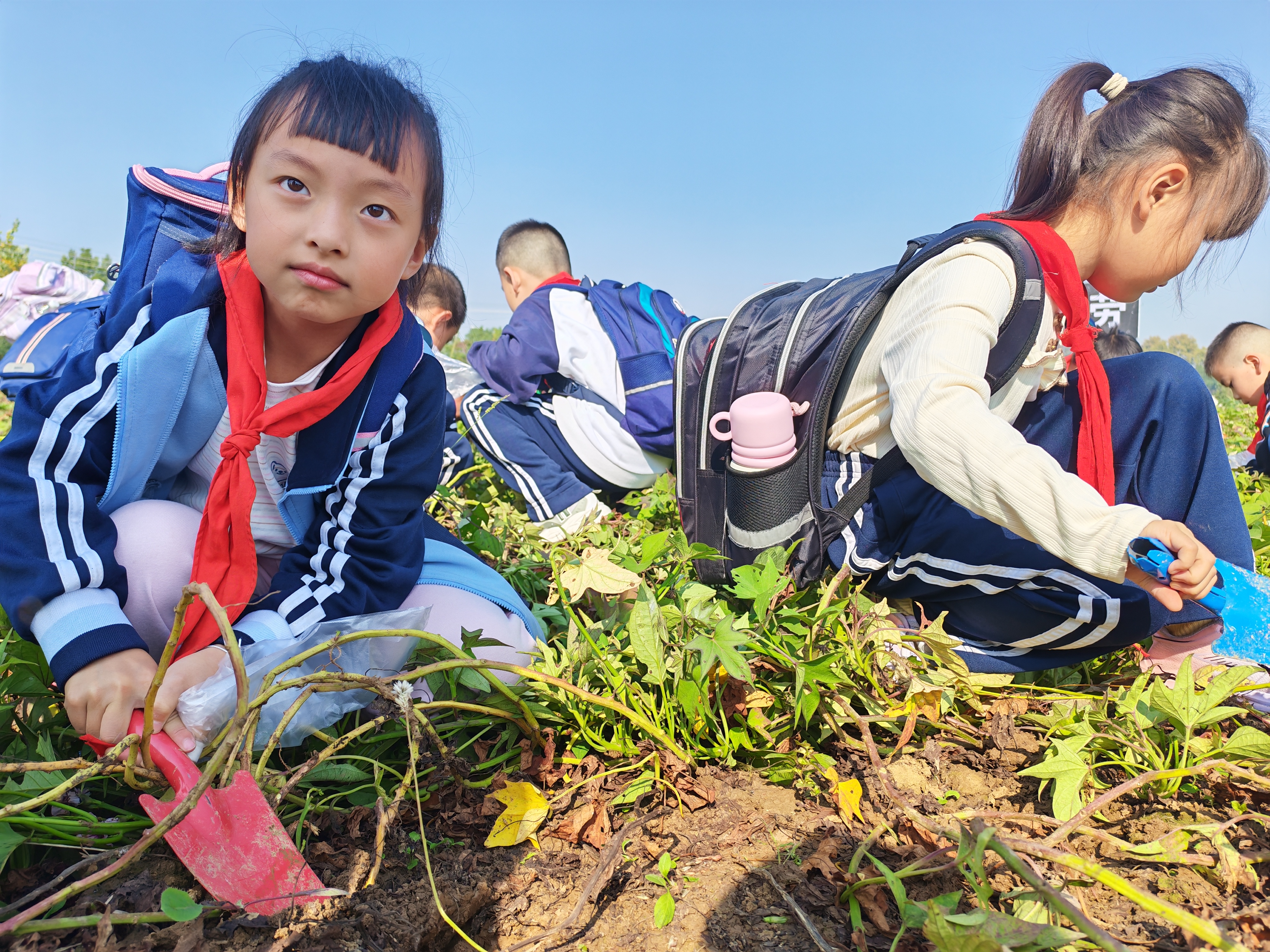最受孩子们欢迎的,当属田野挖红薯与鼓槌舞龙活动。在红薯地里,孩子们手持小铲子,在老师的指导下,小心翼翼地拨开泥土,寻找埋在地下的红薯。“我挖到一个大红薯啦!”“快看,我的红薯长得像小拳头!”孩子们捧着自己的“战利品”,兴奋地向同伴展示。泥土沾满了小手和衣角,却丝毫挡不住他们的热情。挖红薯不仅让孩子们体验了农耕的乐趣,更让他们感受到了丰收的喜悦与劳动的价值。